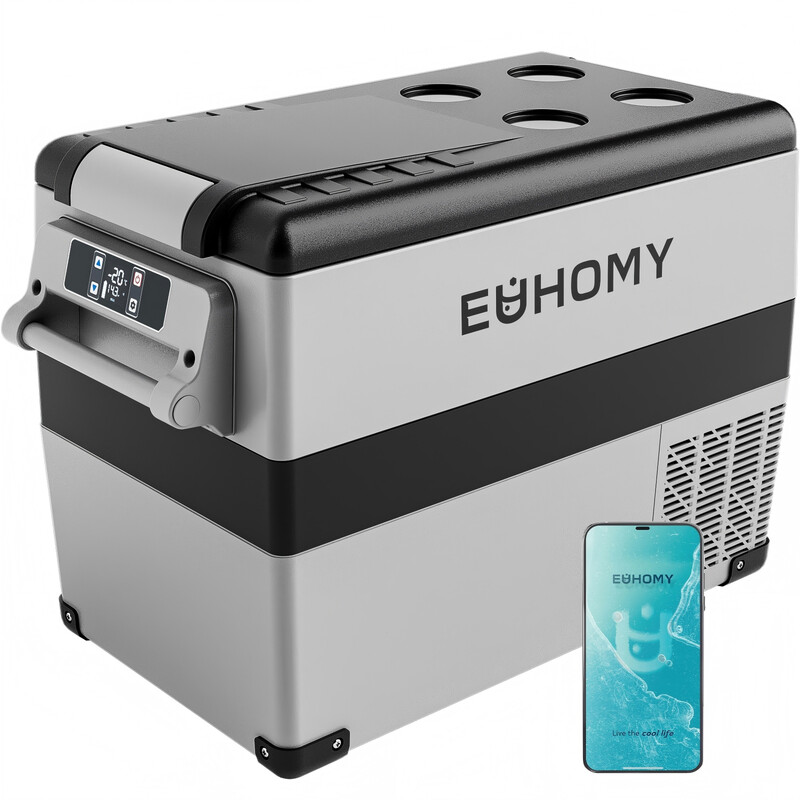 EUHOMY 40L Kompressor Kühlbox [-20℃~20℃] | 15-Min Schnellkühlung| APP Steuerung| ECO-Modus (<45W) & MAX-Modus | 12/24V DC + 100-240V AC | 3-Stufen Batterieschutz (L/M/H) | Tragbar & Leise (<42dB) [Energieklasse C]