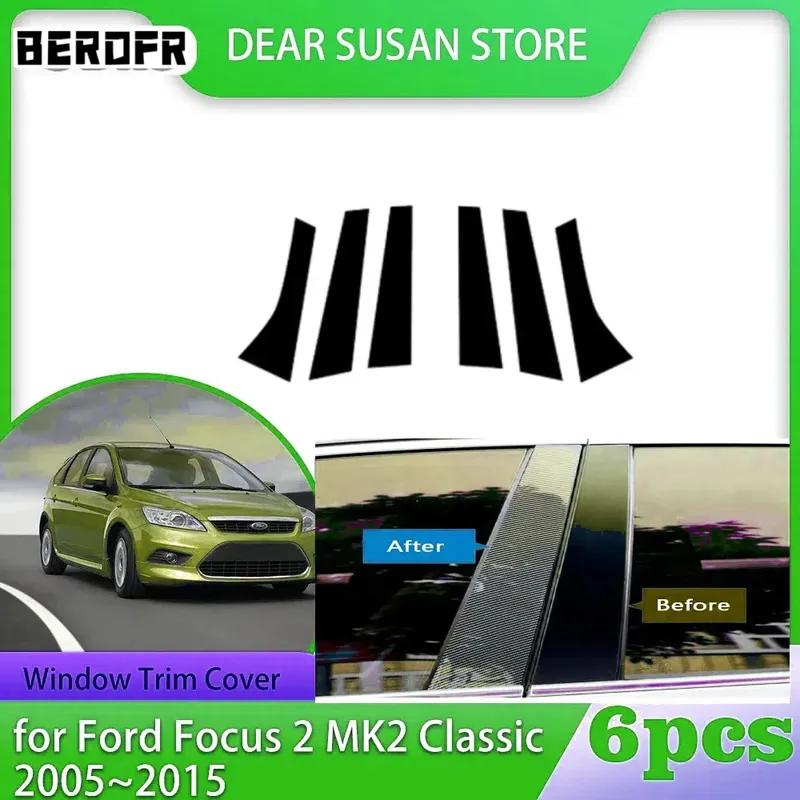 Passar Ford Focus Sedan/Hatchback 2005-2013 2014 6 st Glanssvarta Stolpar Dörrsida Formlist Klistermärke Fönsterdekor Skydd svart