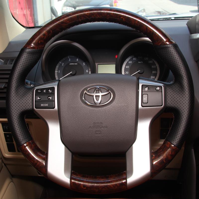 for Toyota Land Cruiser Prado 2010-2017 Håndsydd sklisikker svart skinn ferskenvedmønster bilrattdeksel