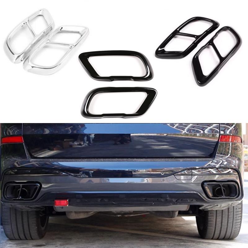 2 Stuks Zwart / Zilver Voor BMW M Sport X5 G05 X6 G06 X7 G07 2019-2022 Staart Demper Uitlaatpijp Uitlaat Afdekking Sierlijst Auto Accessoires