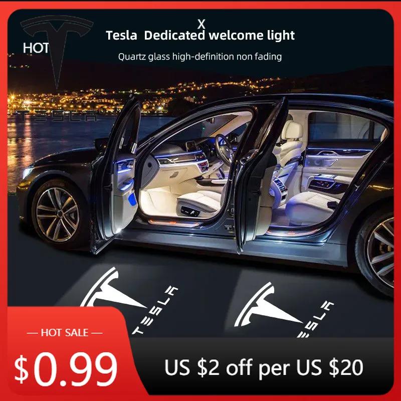 Bilklistremerke Tesla 2 stk HD LED Dørlys Velkomstlys Prosjektorlampe Styling For Tesla Model-Y Model-3 Model-X Model-S Cybertruck