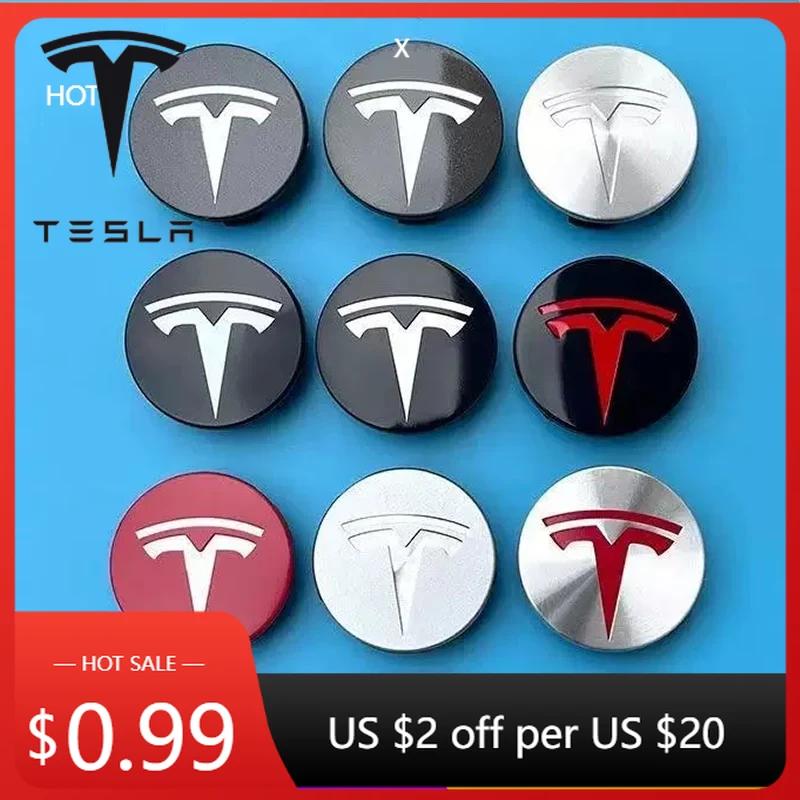 Bilklistremerke Tesla 4 stk 56 mm Navkapsler For Tesla Model 3 Model Y Merke Cover Navkapsler for Tesla Model Y X S 2023 Bil A