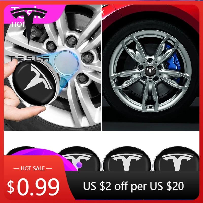 Bilklistremerke 2025 Ny Tesla 4 stk 60 mm Bilhjulnavdeksler Dekkhetter 56 mm Felgdeksel Klistremerke Merke Emblem for Tesla Model 3 Y S X
