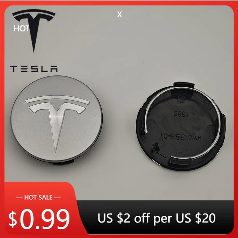 Bilklistremerke Tesla 4 stk/sett 56 mm Matt Sølv Original Bilfelg Senterkopp Emblem Felger Navkapsel Logo Merke For Tesla Model 3 Y