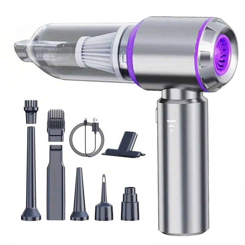 EAFC Brushless Vacuum Cleaner 16000PA Wireless Vacuum Tool Set with 9 Accessories, Built-in 16000mAh Rechargeable Battery, Lightweight Mini Vacuum for Car, Home, Office, and Kitchen, Silvery Purple