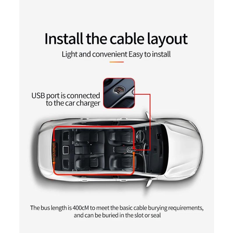4 i 1 Billaddare 120W PD+USB Snabbladdare med 2 Infällbara Kablar Atmosfärslampa Stjärntopplampa SnabbLaddningsadapter för IOS Android-telefoner