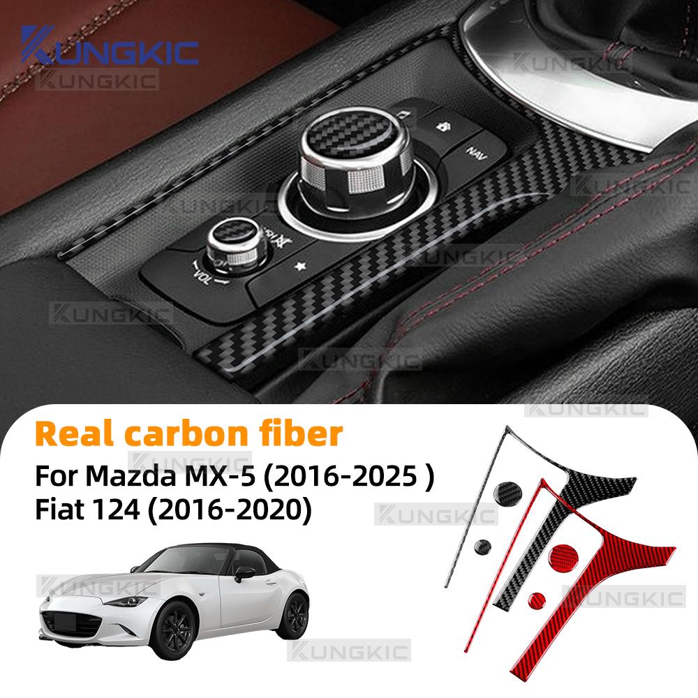 For Mazda MX-5 MX5 Miata Roadster ND ND2 MK4 2015-2025/Fiat 124 2016-2020 Ekte Mykt Karbonfiber Bil Girspakknapp Klistremerke