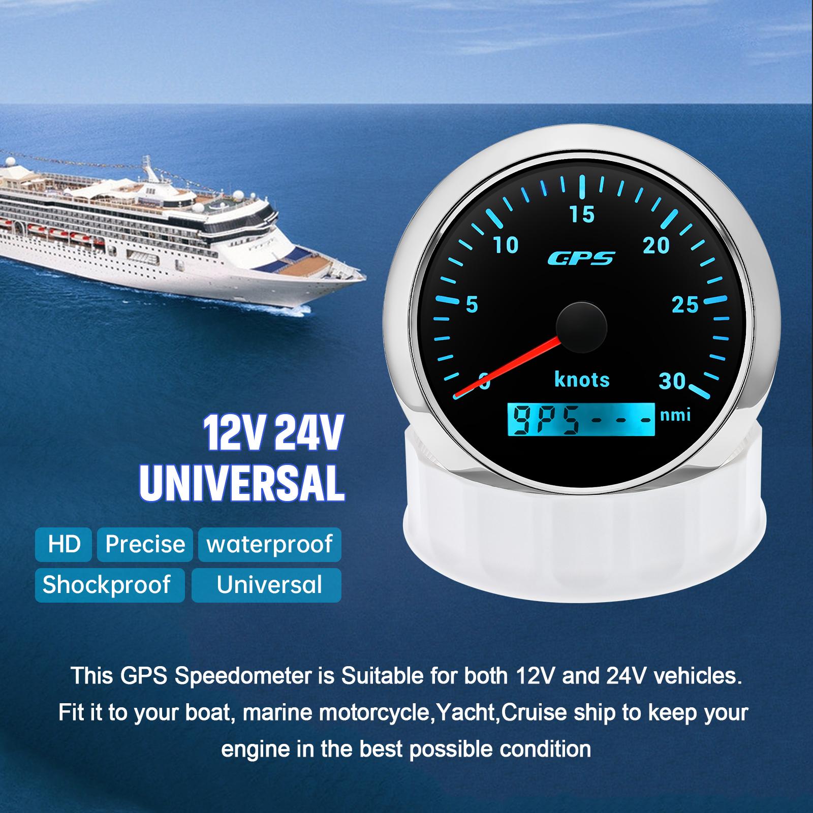 85MM Digital GPS Hastighetsmåler 0~30 Knop 0~60 Knop Hastighetsmåler Med GPS-antenne For Båt Bil Yakt 7 Farger Bakgrunnslys 12V 24V