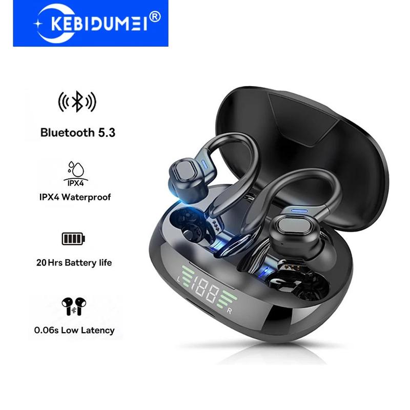 Bluetooth 5.3 Hodetelefon TWS Sports Headset Trådløs Ørekrok Øretelefon HiFi Stereo støyreduksjon øreplugger