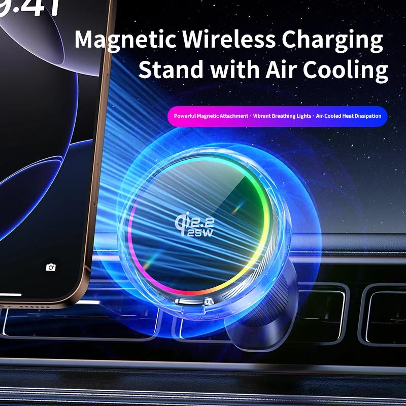 qi2.2 25W Bil Magnetisk RGB Trådløs Lader Med Luftkjølingsvifte Telefonholder For Magsafe iPhone 17 16 15 14 13 12 Hurtiglading