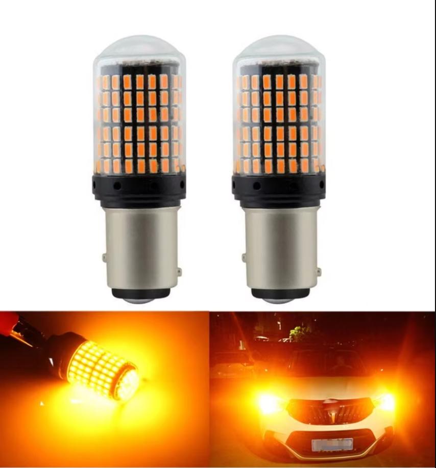 1157 P21/5W BAY15D 144SMD Oransje LED Canbus Blinklysindikatorpærer 12V, 2 stk. Gul