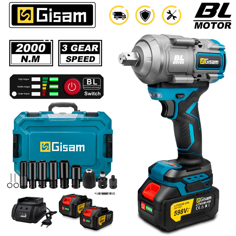 GISAM Clé à chocs électrique brushless sans fil 2000N.m 1/2 pouce, compatible avec batterie Makita 18 V