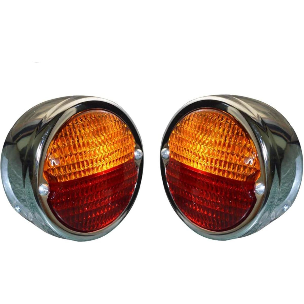 APSMOTIV Vintage Duolamp Tail Light Chrome 12V Rear Stop & License Plate Real Light Red/Amber Lens for Ford A Rat Harley 1950 Dodge truck Classic red/