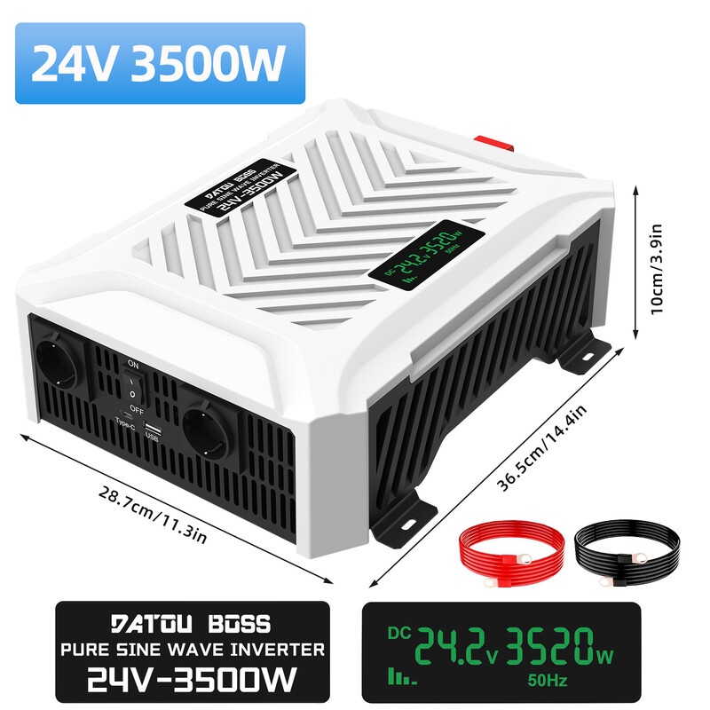 DATOUBOSS Inverter, 24 V zu 230 V Spannungswandler mit reinem Sinus-Signal, 3500 W/7000 W Leistungsstark, mit 2 EU-Steckdosen, USB/USB-C und LCD-Display, Wandler mit Stromtransformator für Lastwagen, Camping, Haushalt