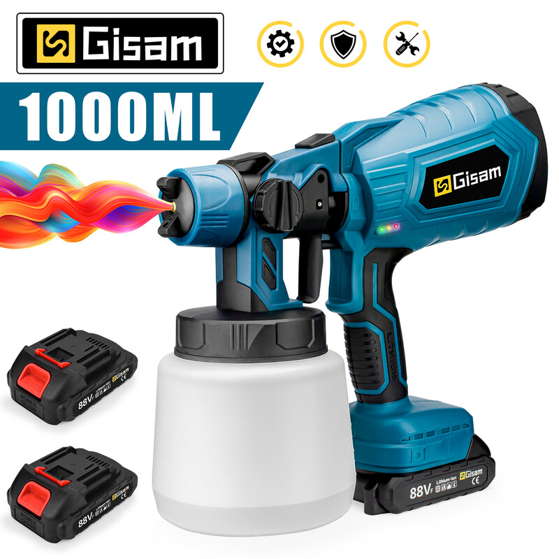 Gisam Pulvérisateur électrique HVLP sans fil 1000 ml, pour voiture, meubles et acier, aérospray, compatible avec batterie Makita 18 V, pince à épiler