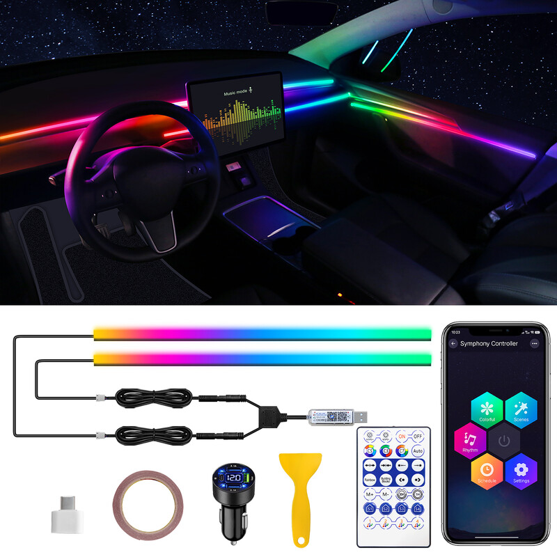 VGETTING Bande LED intérieure avec port USB/Type C, éclairage ambiant néon RGB 2-en-1 280 cm avec synchronisation musicale dynamique