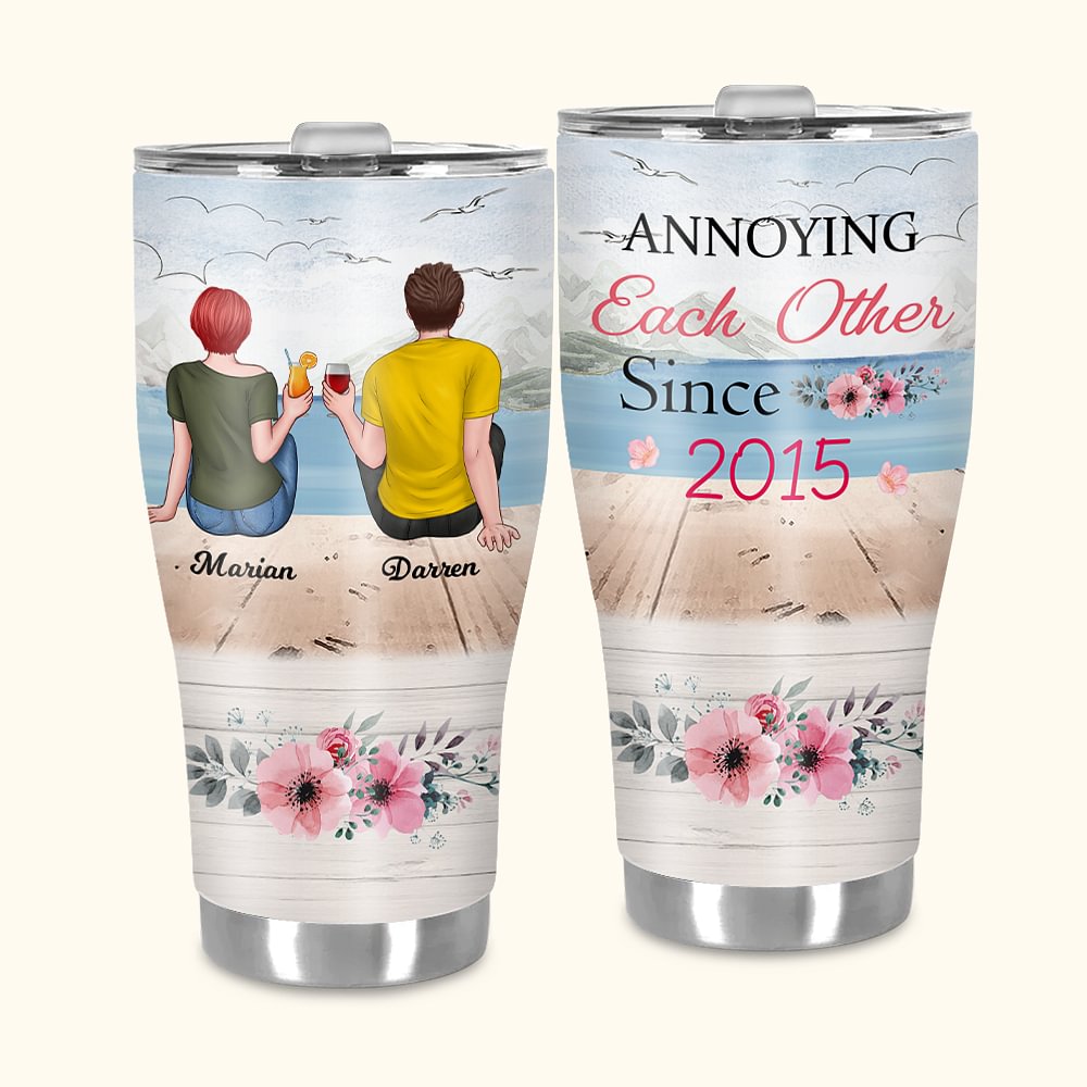 Gepersonaliseerd Elkaar Ergerend Sinds 2019 Paar Zittend Aan Het Meer Gebogen Tumbler met Rietje Verjaardagscadeau voor Paar