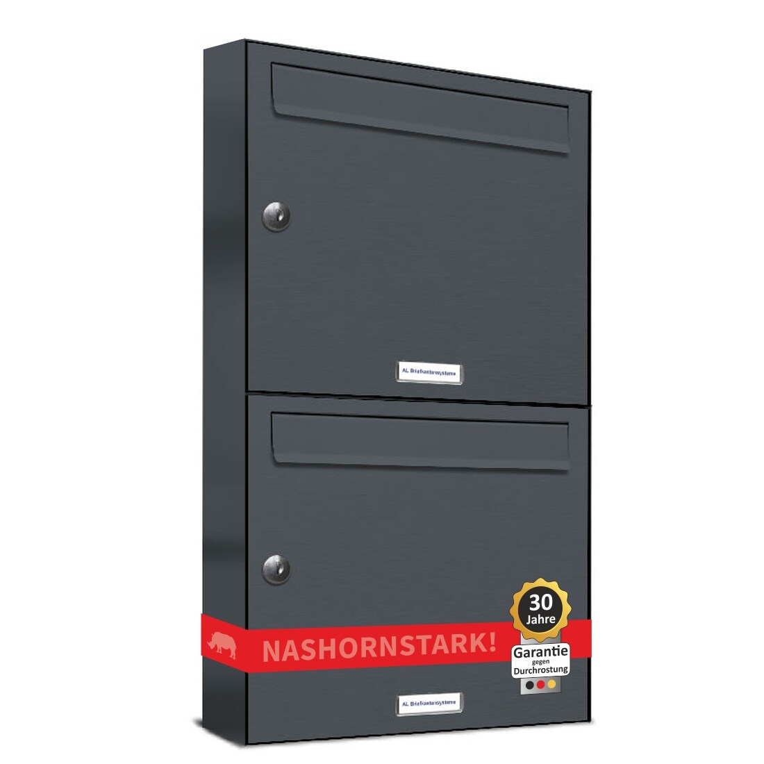 AL Briefkastensysteme 2 Fächer Premium Durchwurf Briefkasten A4 RAL 7016 Anthrazit Grau, Post A4, robust, wetterfest, Artikelnummer: 331P2DZ2KSRP7016