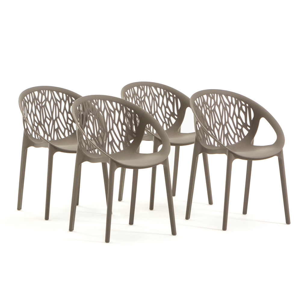 RATTATAN Set mit 4 stapelbaren Stühlen aus Polypropylen mit Glasfaser für Außenbereich und Garten, Bar, Restaurant oder Küche, modernes Design – Lara–Taupe