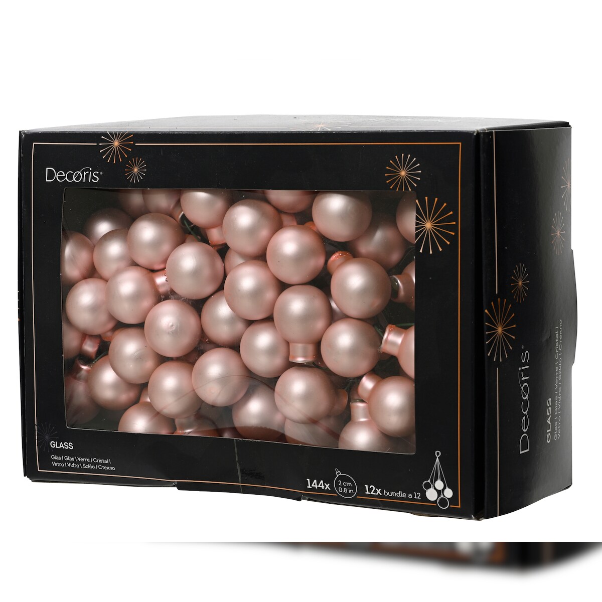 144 Weihnachtskugeln am Draht Glas 2cm mini Spiegelbeeren zum Basteln hellrosa