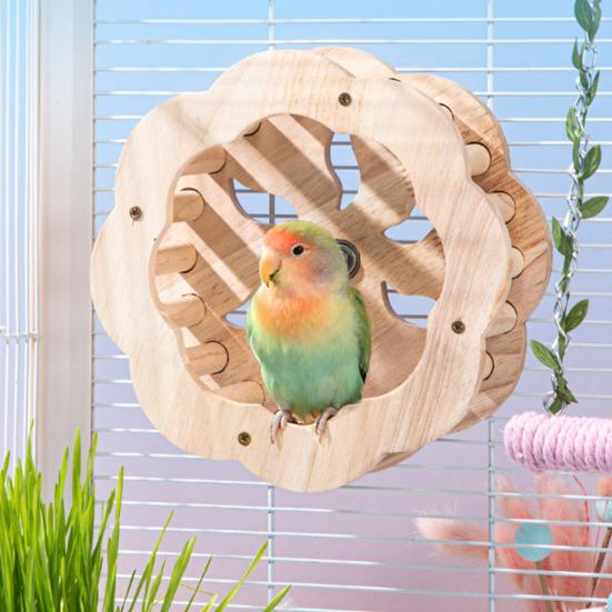 Wooden Bird Perch Toy Wheel Parakeet Perch Rotating Interactive Spinning Wheel Bird Cage Toy