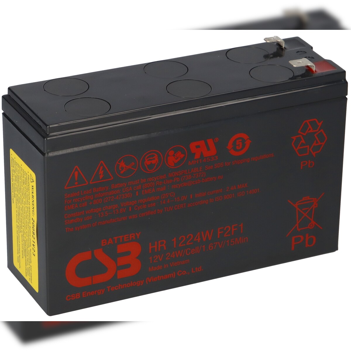 CSB Hochstrom Bleiakku HR1224WF2F1 12V 24W- 6Ah 12V 6Ah Lead-Acid Schwarz