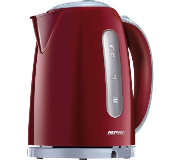 MPM MCZ-85/B2 Elektrischer Wasserkocher, 1,7 l, BPA-frei, verdecktes Heizelement, kabellos, automatische Abschaltung, rot, 2200 W