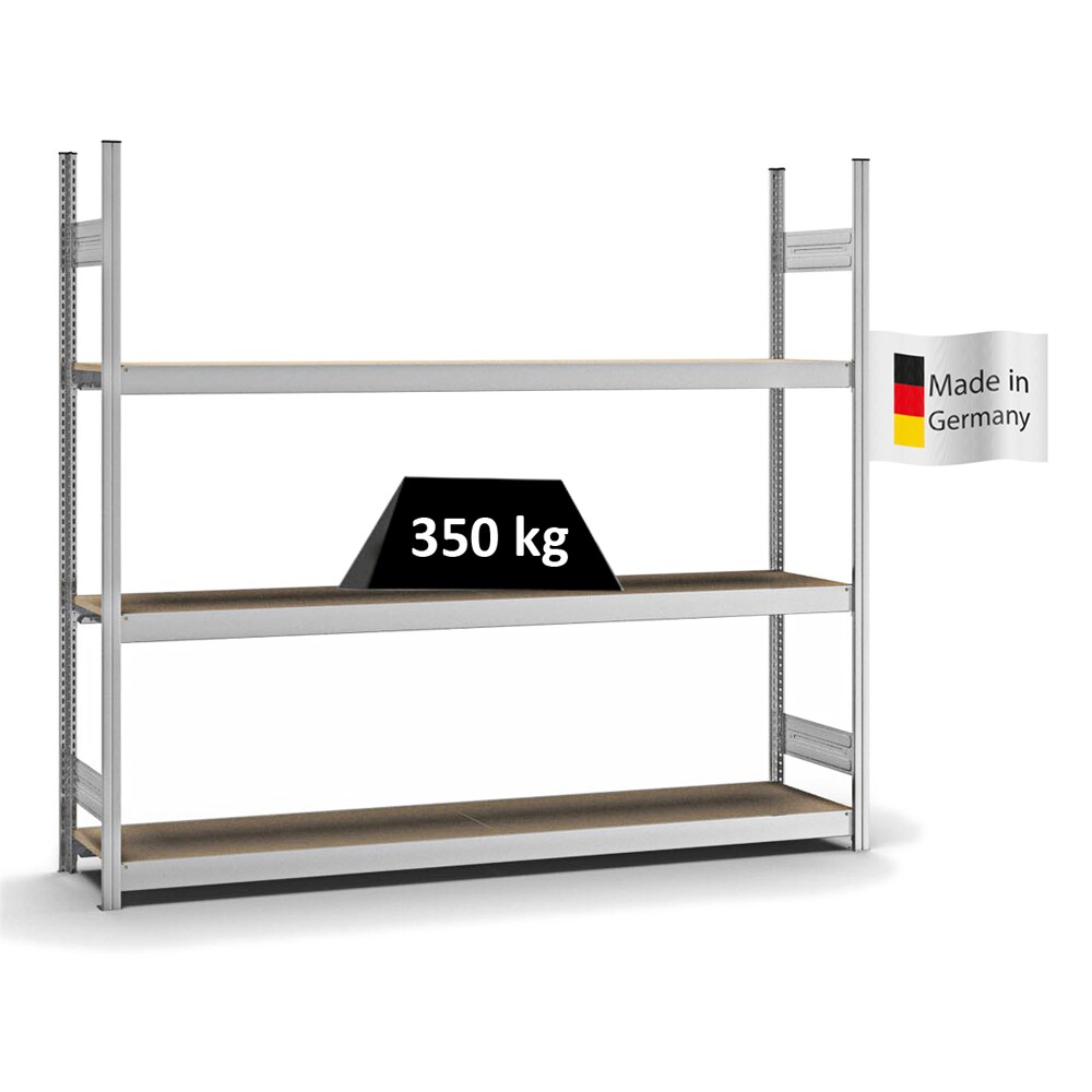 PROREGAL Weitspannregal Stecksystem T-Profil | HxBxT 200x150x60cm | 3 Ebenen | Spanplatten-Fachboden | Fachlast 350kg | Verzinkt | Lagerregal