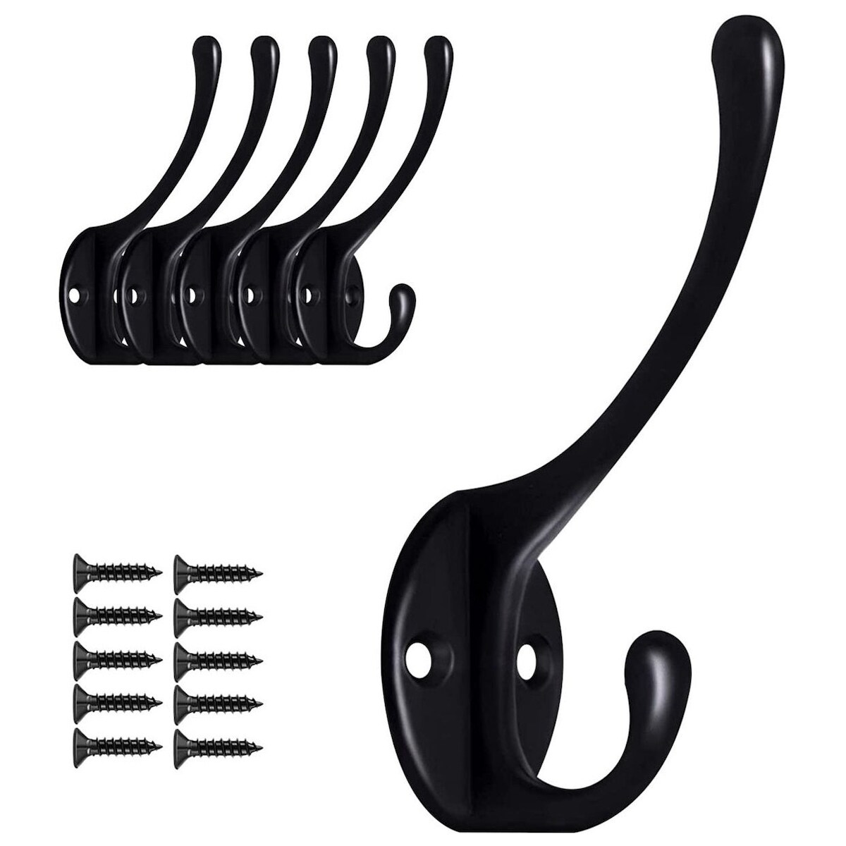 TOJ Living Kleiderhaken – 5er-Set – matt schwarz – bis 5 kg belastbar – inkl. Schrauben – Wandhaken