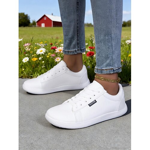 scarpe da ginnastica classiche da donna in similpelle bianca con vestibilità ampia – scarpe basse casual con lacci per tennis, passeggiate, scuola e uso quotidiano