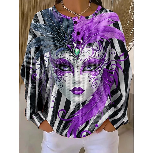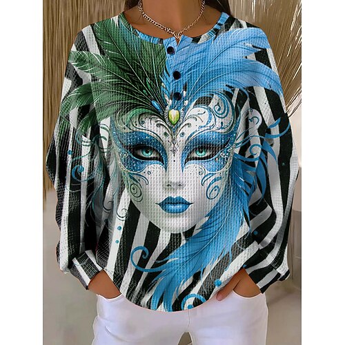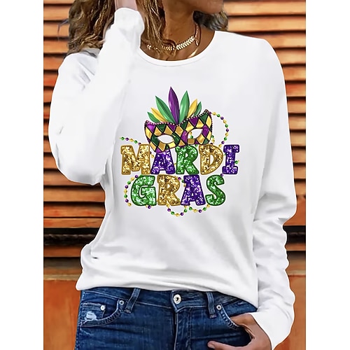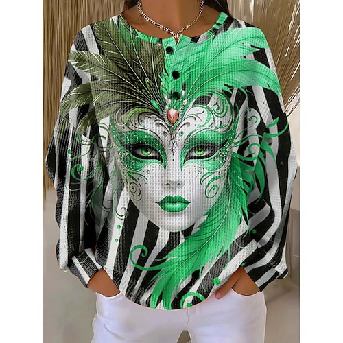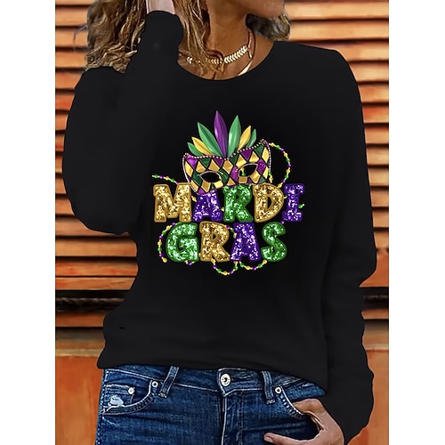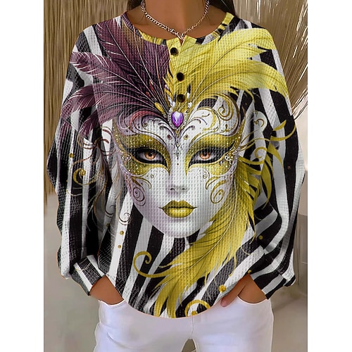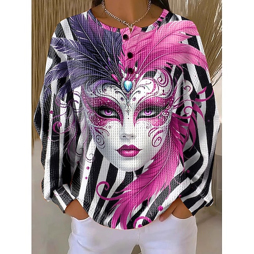 Maglietta da donna Carnival con grafica alla moda classica a maniche lunghe collo tondo ampio stampa nera bianca grigia estate primavera autunno