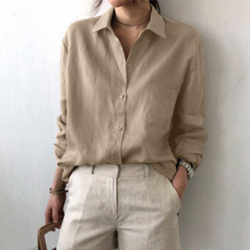 2023 Vintage Cotton Linen Shirt Women Solid ColorTops Autumn Spring Long Sleeve Clothes Office Lady Chic Clothes 24162 cm pink