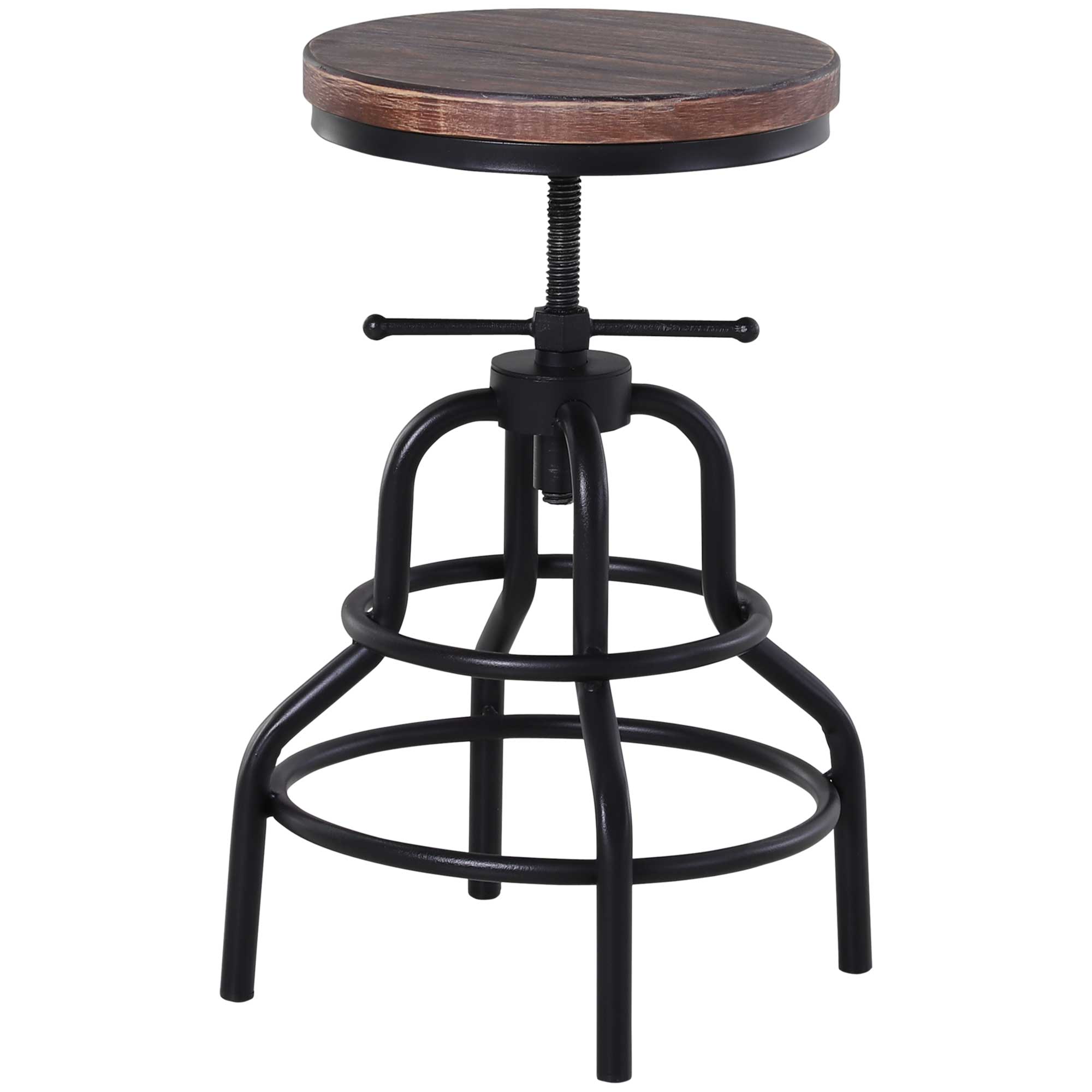 HOMCOM Sgabello Stile Industriale in Legno di Pino e Metallo, Altezza Regolabile, Cucina/Bar/Ristorante, 40x40x52-68cm