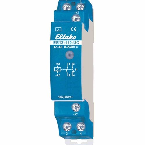 Eltako Installationsrelais, 1TE, teilelektronisch, DIN-Schiene, 1S, 1Ö, 8-230V/AC/DC, 16A, 250V, AC