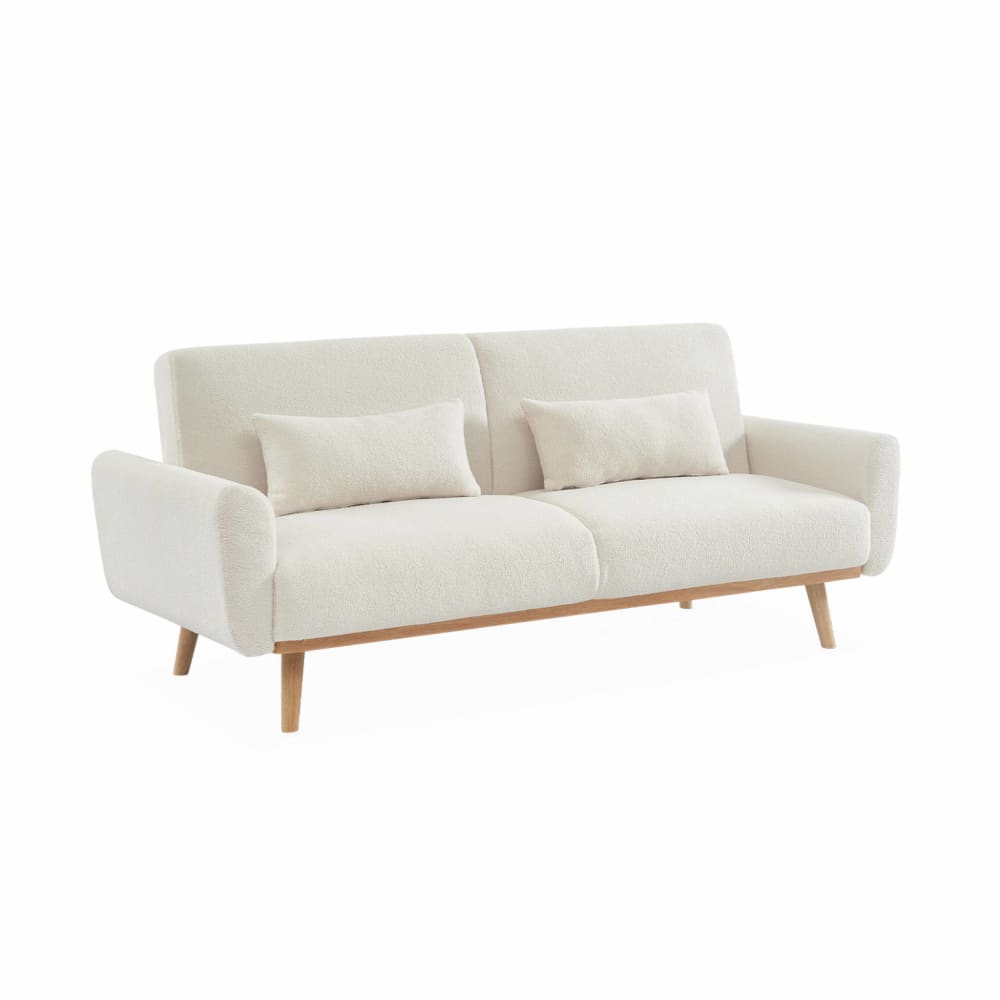 Divano letto reclinabile in bouclé, 3 posti, crema