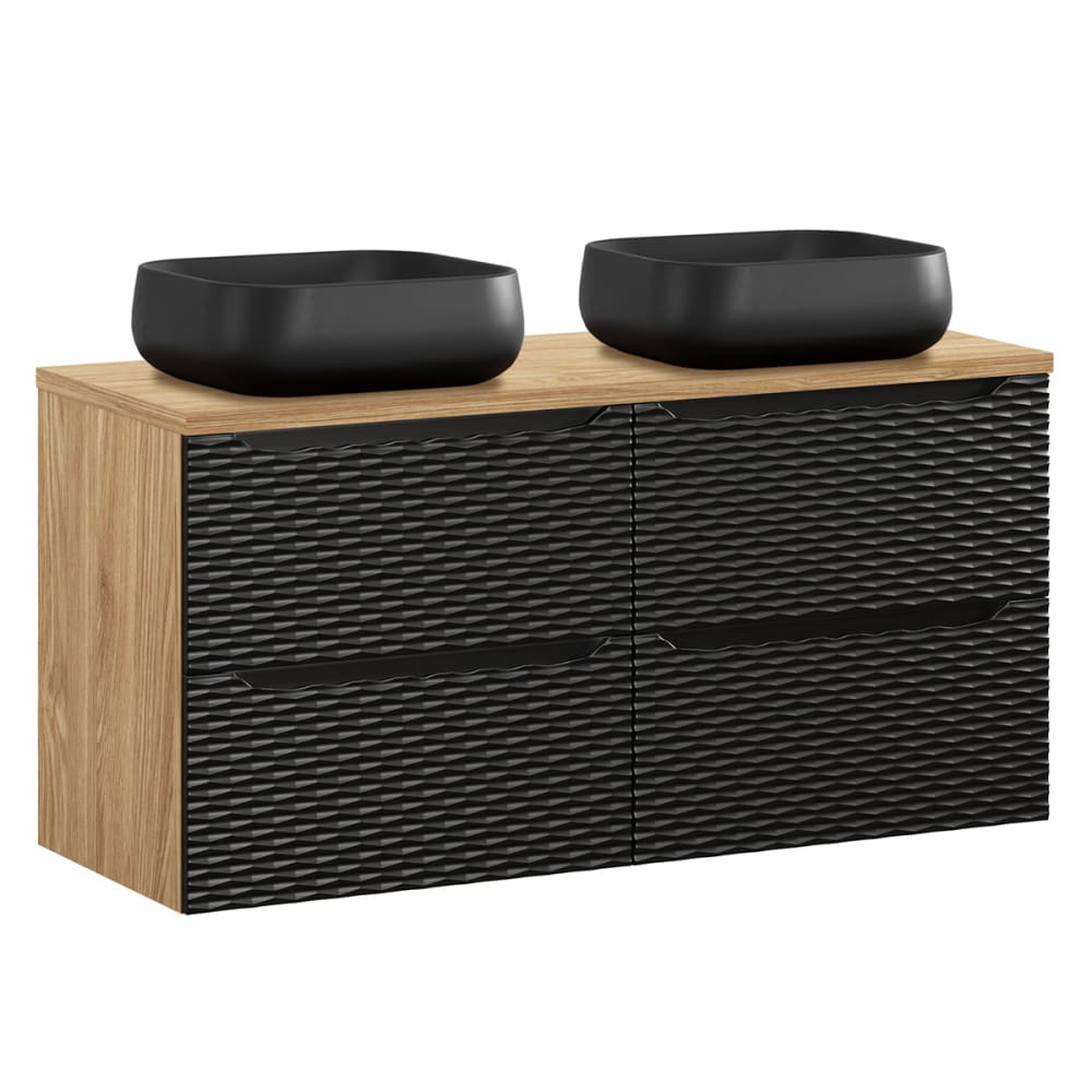 Mobile bagno doppio lavabo effetto legno nero e marrone 120cm