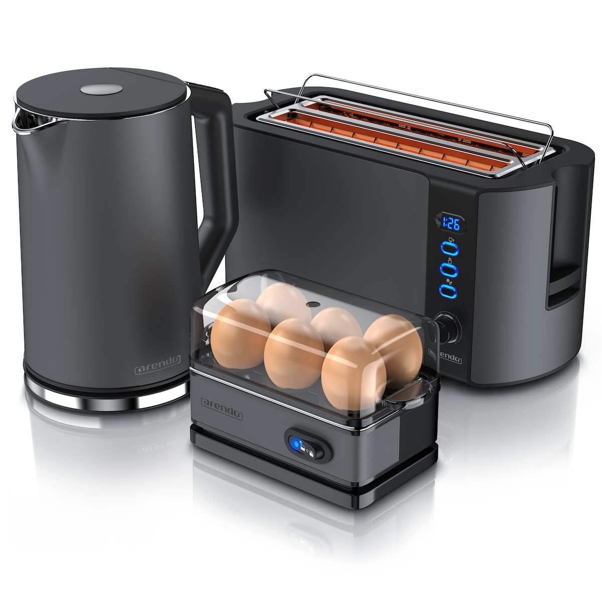 Arendo Frühstücks-Set in grau - Wasserkocher / Toaster / Eierkocher
