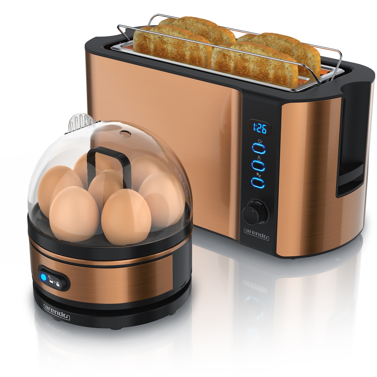Arendo Frühstücks-Set 2-teilig, 4-Scheiben Langschlitztoaster, 6er Eierkocher, Kupfer