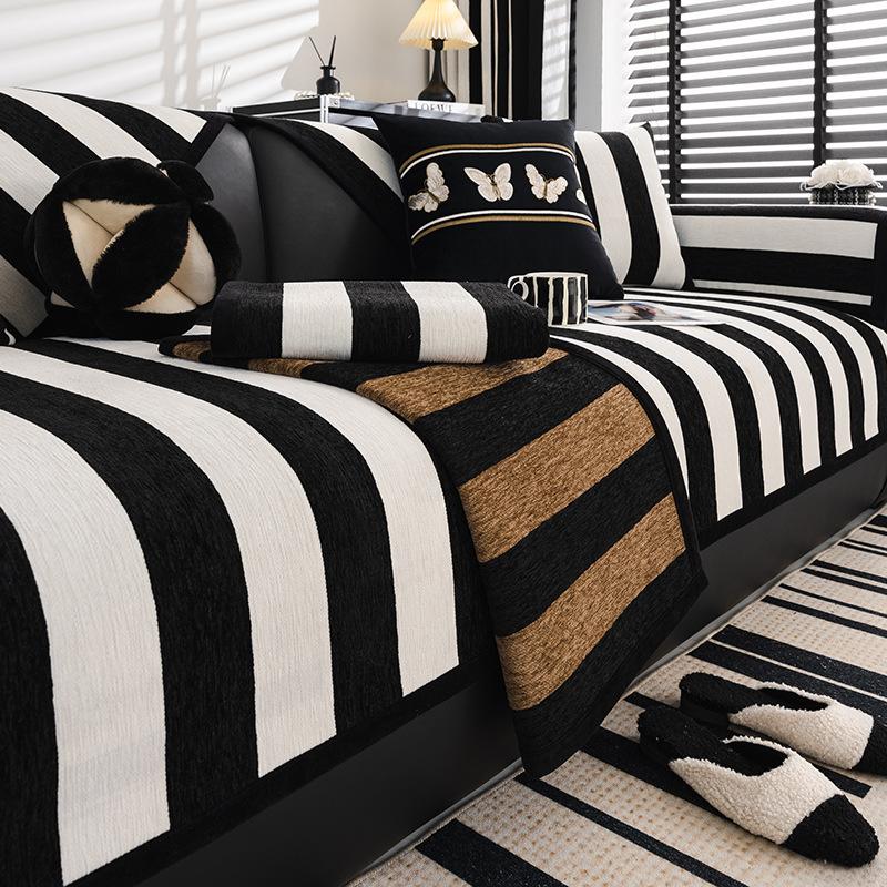 Black and White Striped Sofa Cover Fabric Simple Anti Slip Leather Sofa Cushion Cover Breathable and Suitable for All Seasons black