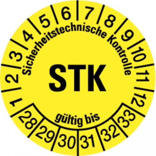 Dreifke® Prüfplakette, STK, gelb/schwarz, Folie, Ø 30 mm - Bogen - 30 mm Folie selbstklebend, 10 St