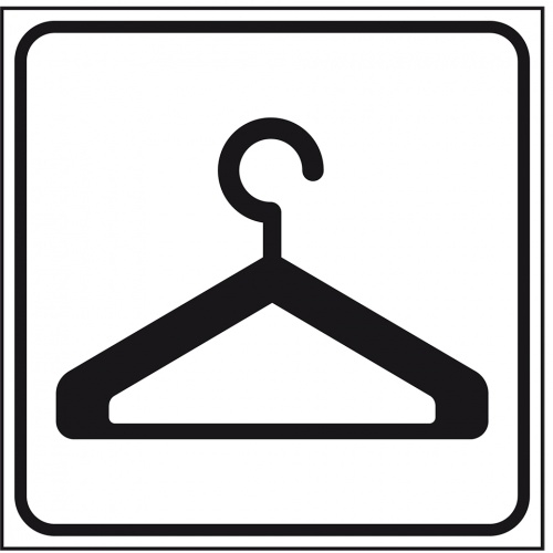 Aufkleber I Standard Piktogramm Kleiderbügel, weiß/schwarz, Folie, selbstklebend, 150x150mm