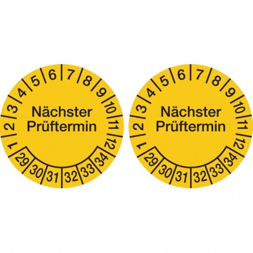 König Werbeanlagen Dreifke® Prüfplakette, Nächster Prüftermin, Folie, gelb/schwarz - 100 mm Folie selbstklebend