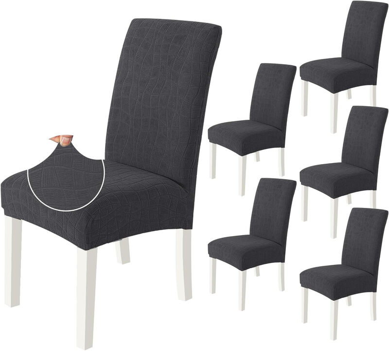 Waterproof Dining Room Chair Covers, Super Fit Stretch Jacquard Parson Chairs Slipcovers Removable Washable Chair Seat Protectors for Home, Kitchen, Banquet,grey 6pcs
