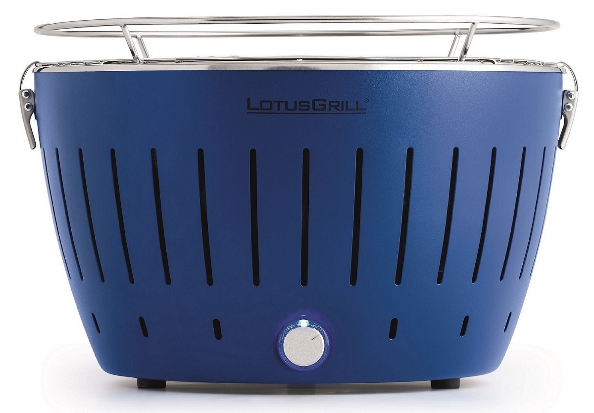 LotusGrill Classic Tiefblau G340 Holzkohlegrill Tischgrill raucharm USB-Anschluß