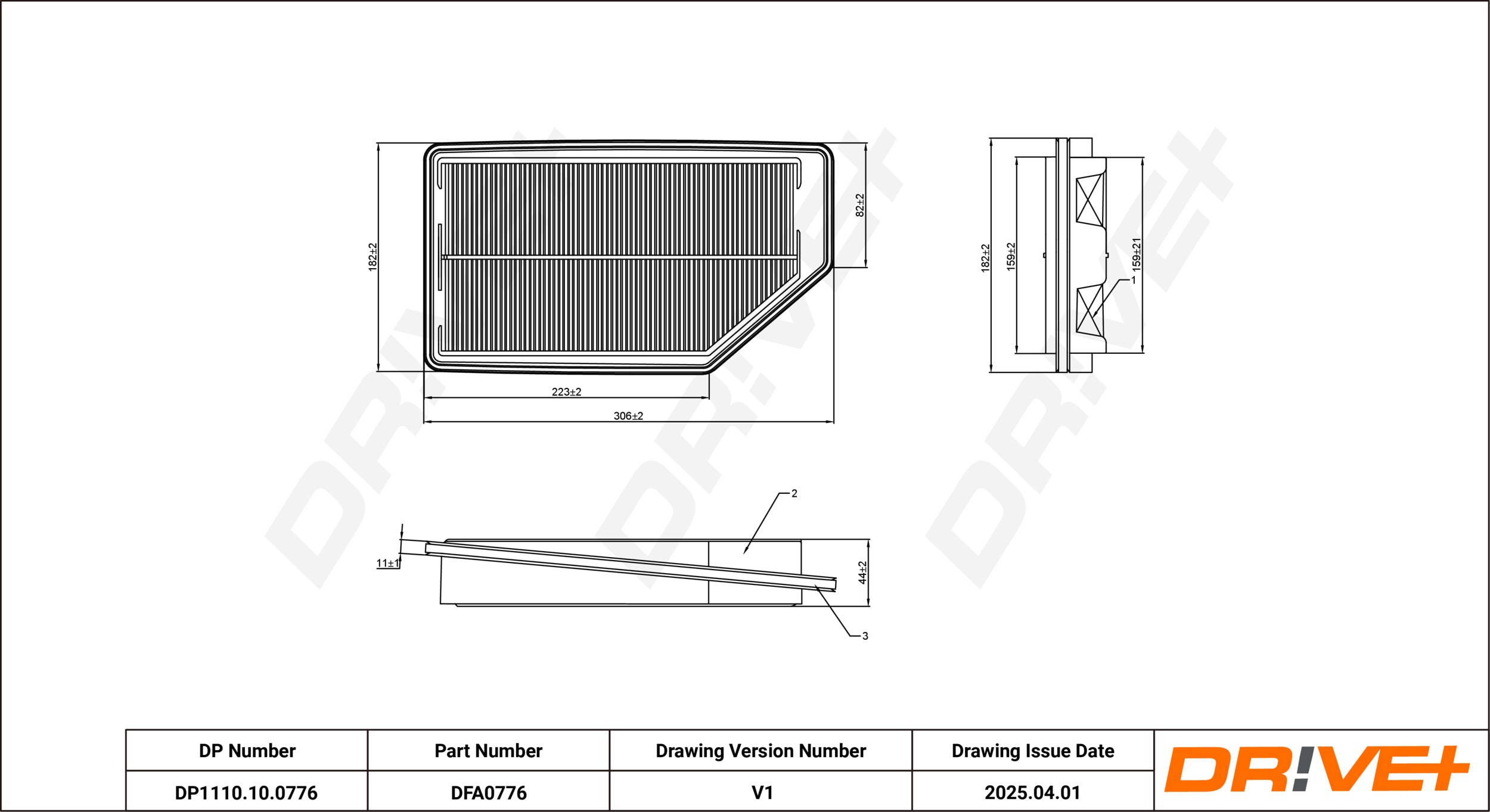 Drive+ Luftfilter für HONDA 17220R3RE01 DP1110.10.0450