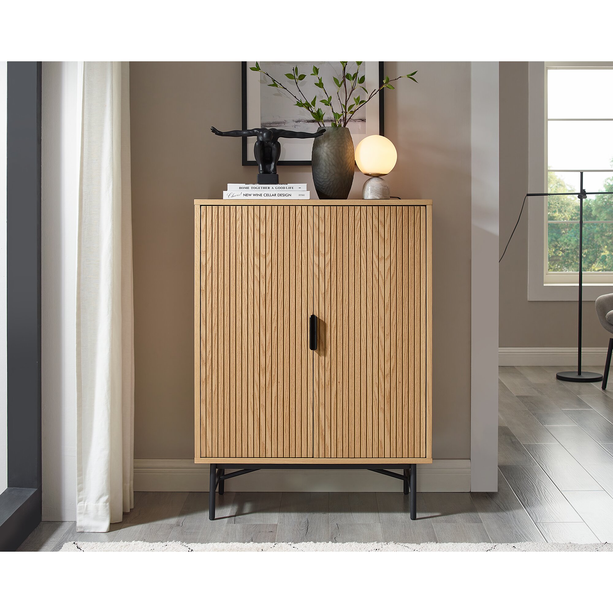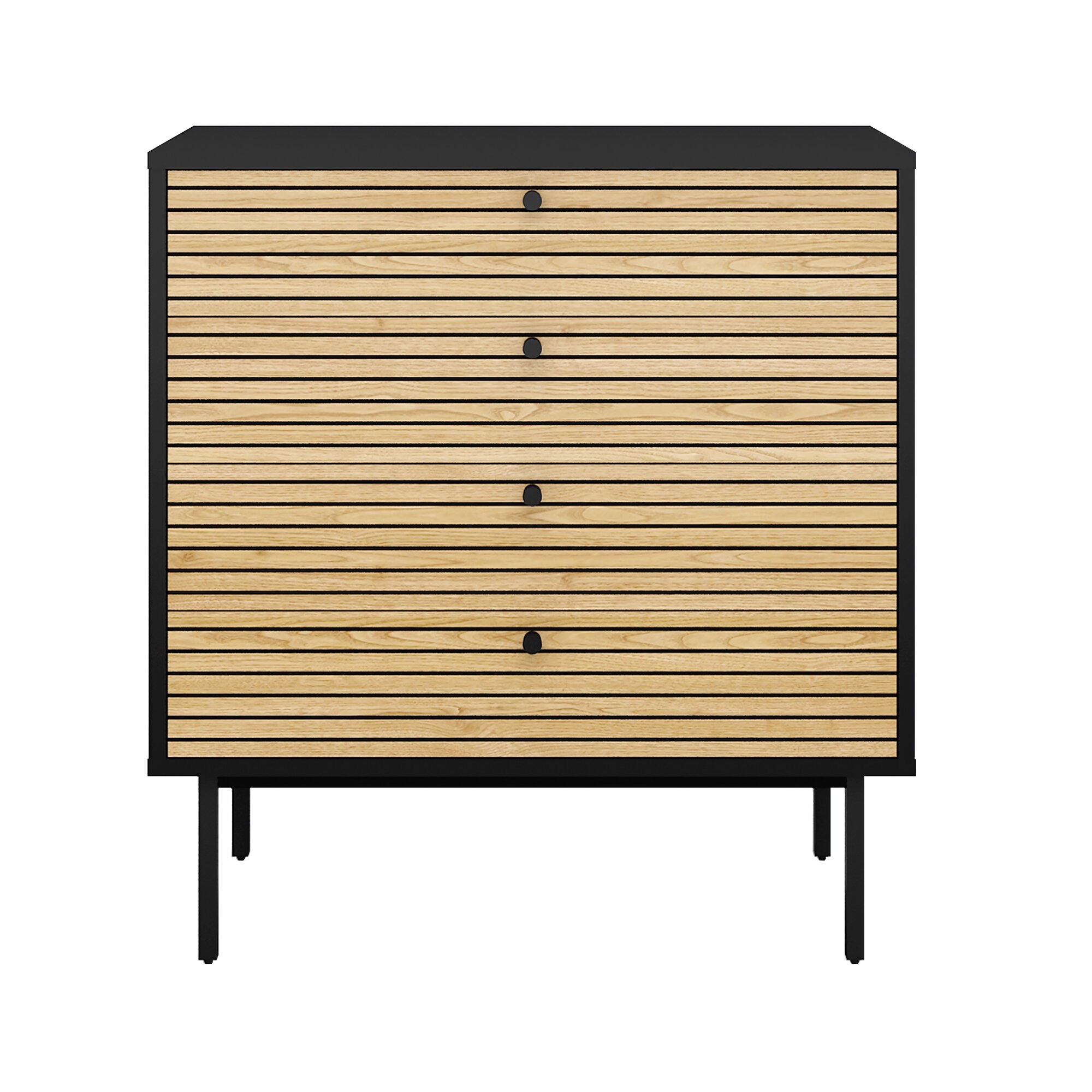 Kommode SALESFEVER "Visby Designer Kommode mit Stil", beige (natur, schwarz), B:120cm H:80cm T:40cm, Furnier, MDF, Metall, Sideboards, Kommode, Eiche Echtholzfurnier