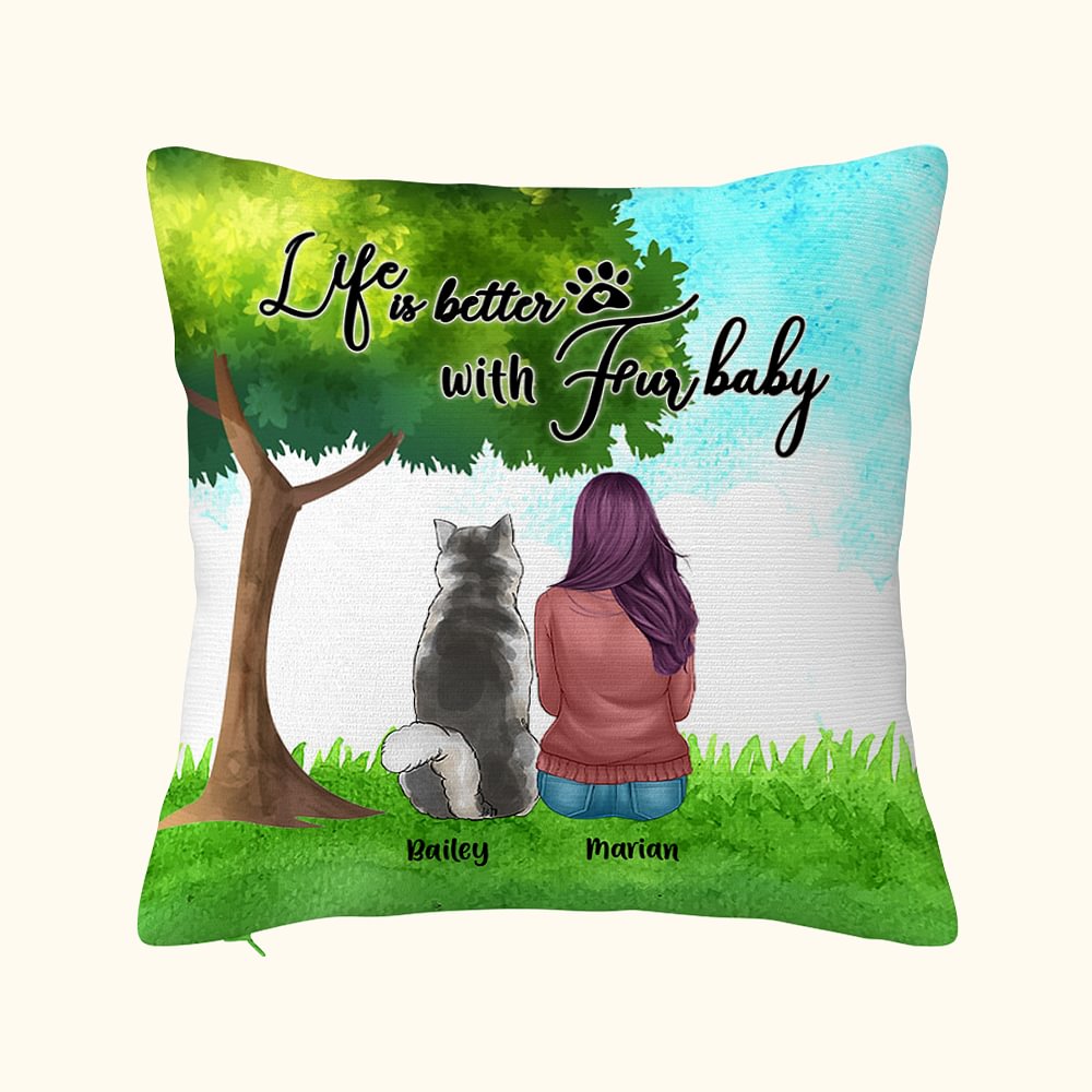 Henkilökohtainen Life Is Better With Fur Baby Throw Pillow Cover Home Essentials Syntymäpäivälahja koiran ystäville