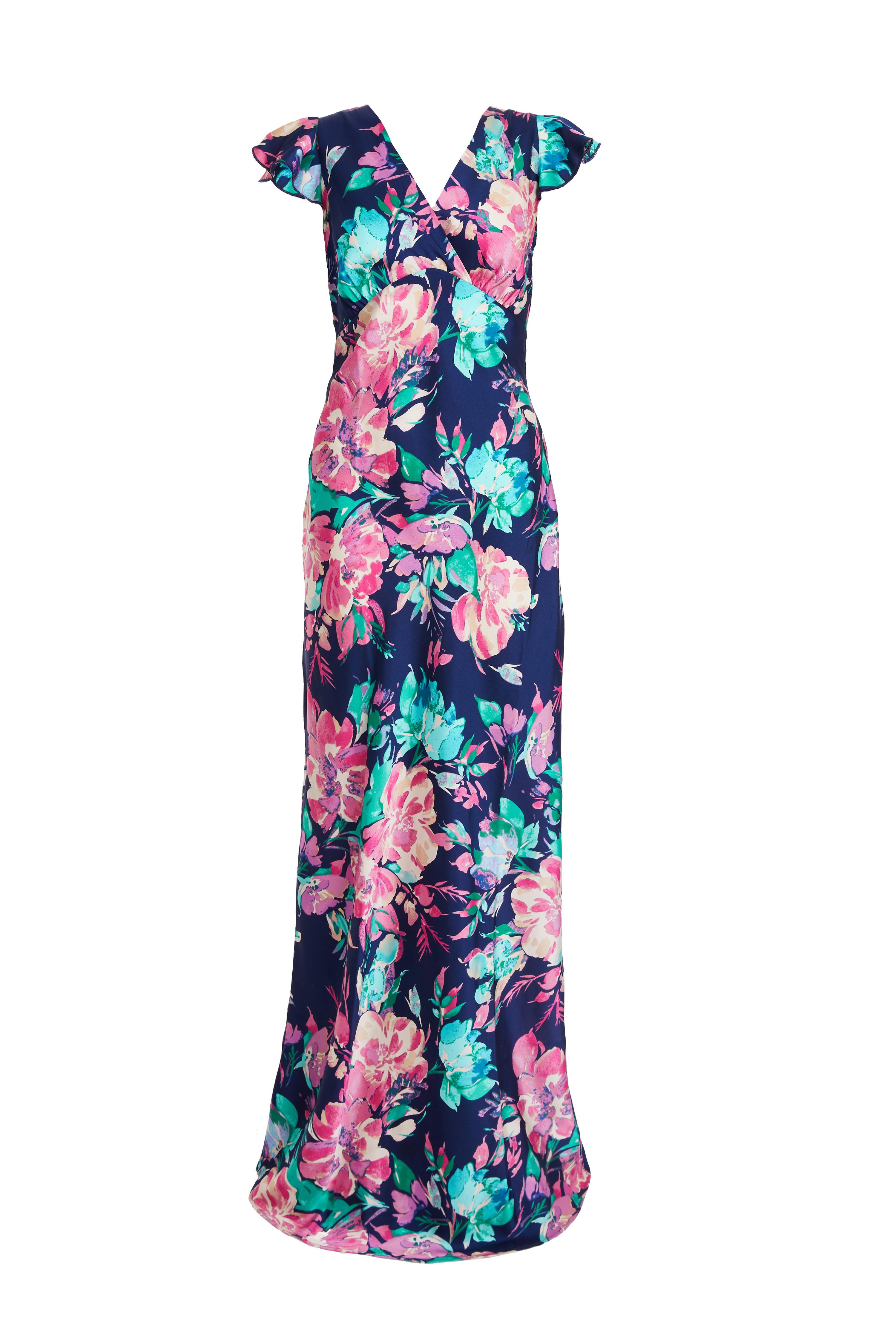 Quiz Womens Navy Satin Floral Maxi Dress - Size 10 UK | Quiz Sale | Discount Designer Brands