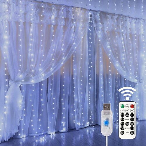 1pc luce a tende 300 LEDs finestra luci a stringa decorazioni per feste di matrimonio bianco caldo