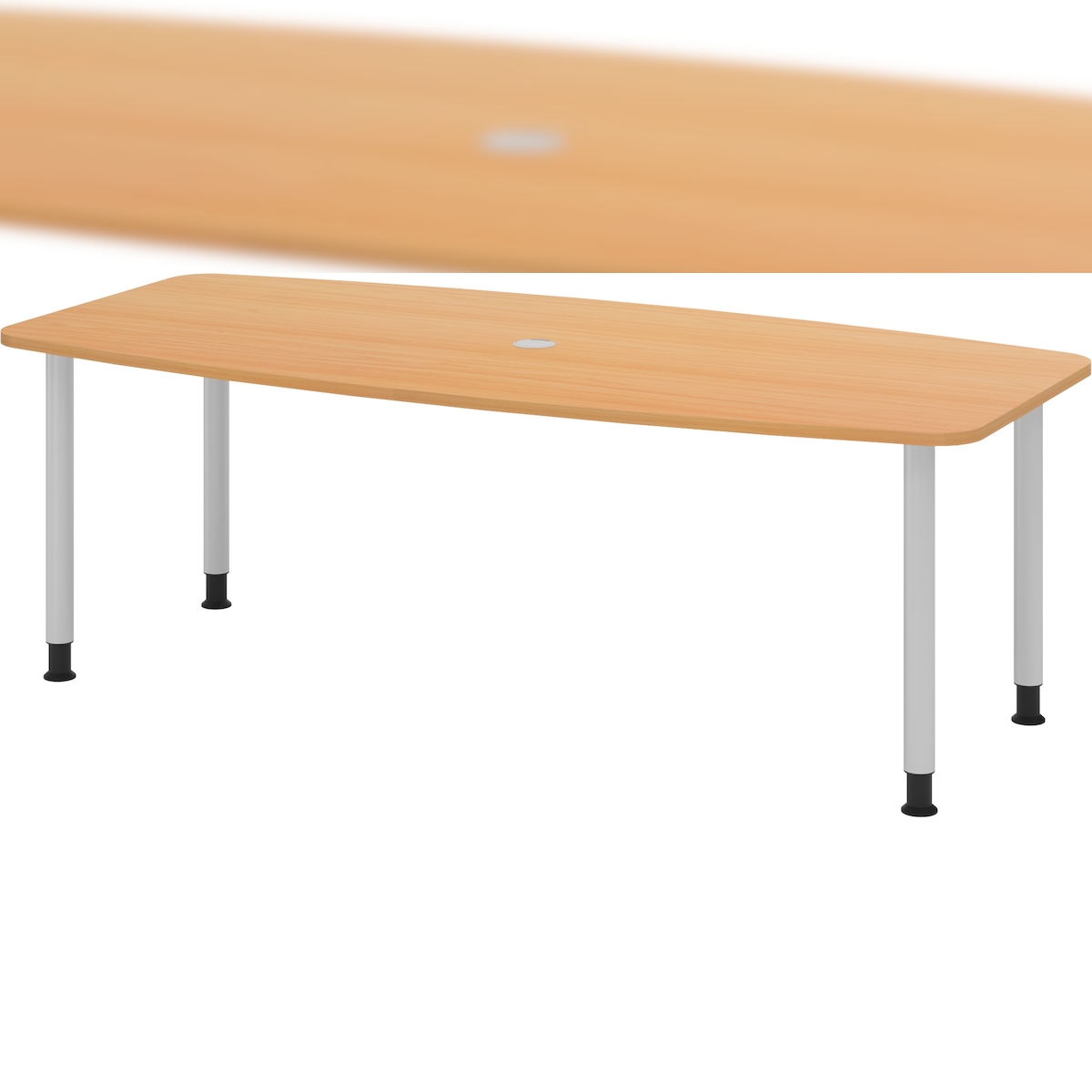 bümö Konferenztisch oval 220x103 cm großer Besprechungstisch in Buche, Besprechungstisch mit Gestell in Silber, Meetingtisch für 8 Personen, XL-Tisch